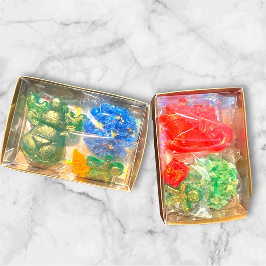Our Christmas Collection captures the enchantment of the holidays in every handcrafted crystal β shimmering ruby reds, creamy golds, and frosted peppermint sparkles that taste like magic. Each piece is made in small batches with artisan care, balancing that crisp, jewel-like shell with a soft, melt-away center.