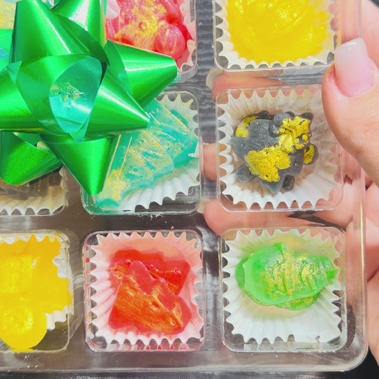 Choose from a 6-piece or 9-piece box β each one curated with different Christmas-themed shapes and assorted flavors.