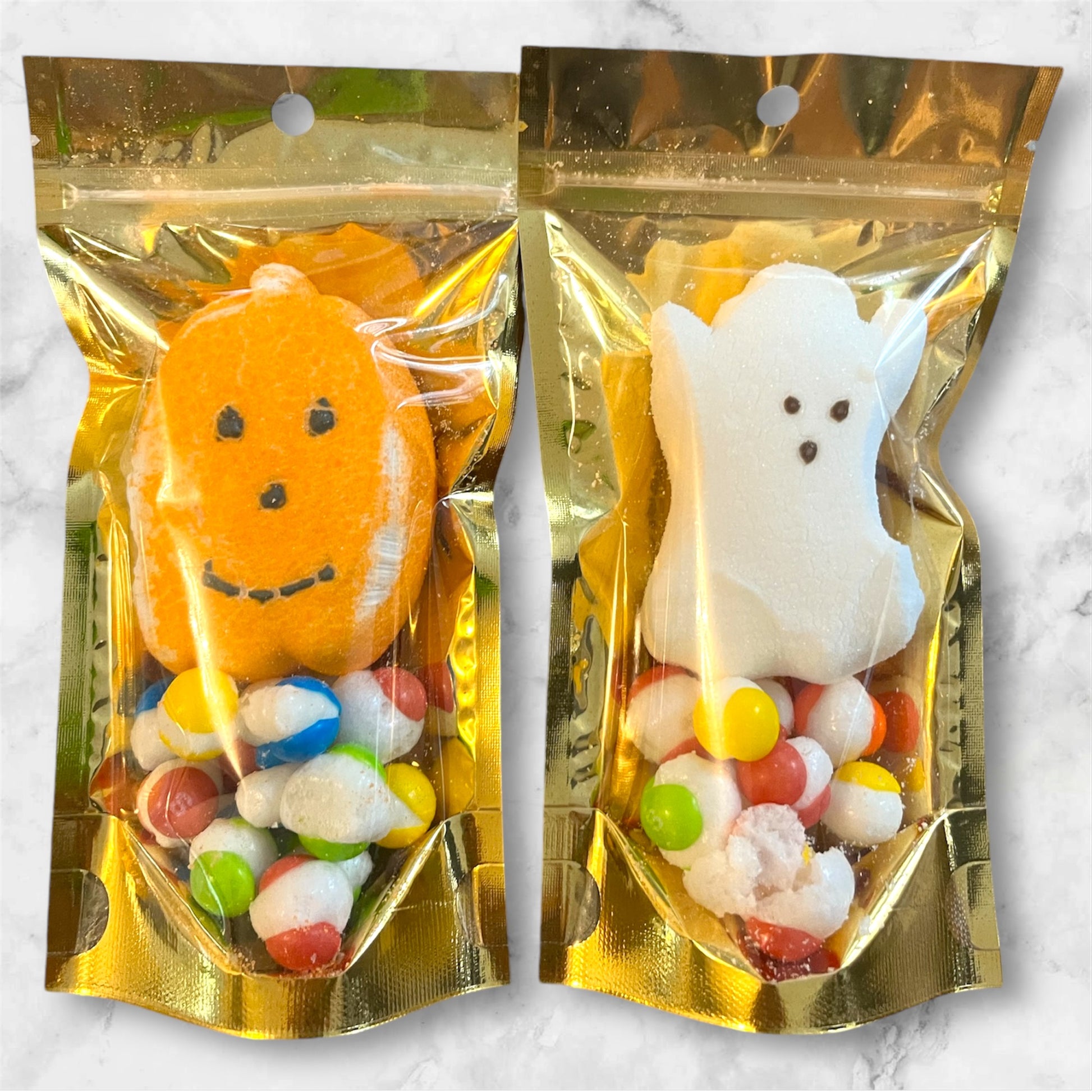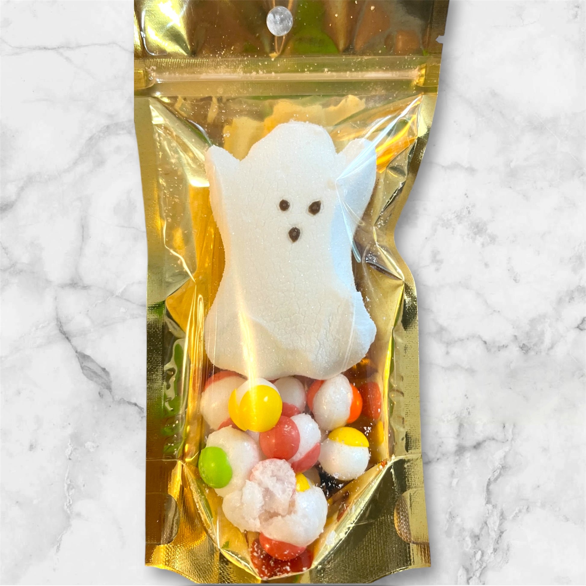Sampler bag with freeze dried peeps and skittlez candy.