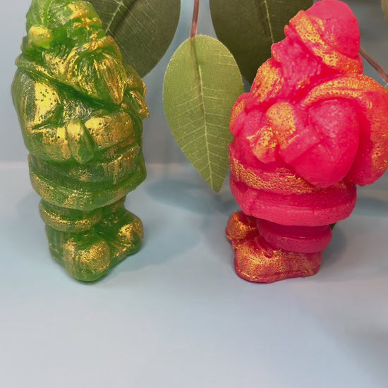 Meet the Grand Santa Crystal Centerpiece, an enchanting, edible holiday sculpture crafted to dazzle any table, dessert display, or Christmas morning unboxing. Hand-poured in small batches, each Santa is a radiant jewel of the season β glowing with festive color, brushed in edible gold, and shaped with intricate detail from hat to boots.