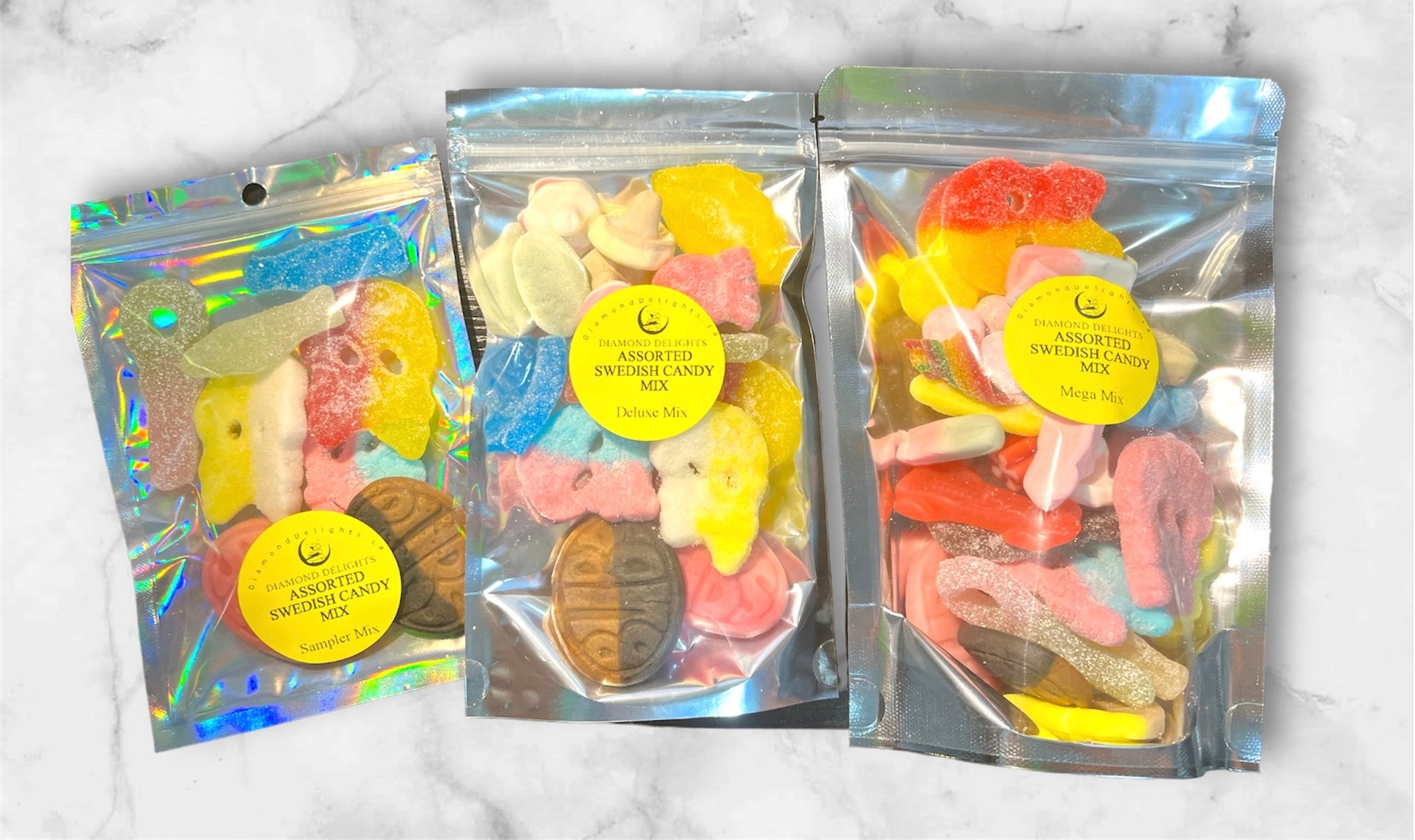 Viral and highly hot Swedish candy mix. Imported by us from Sweden, the mix consists of all the popular Swedish Bubs, skulls, and other candies.