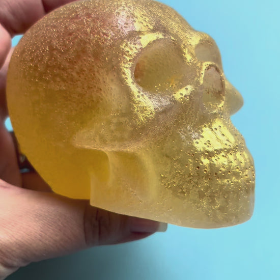 Summon the ultimate Halloween delight! Our giant crystal candy skull shimmers with golden sparkle and hides a secret within⦠a luscious sour jelly heart that oozes with tangy enchantment.